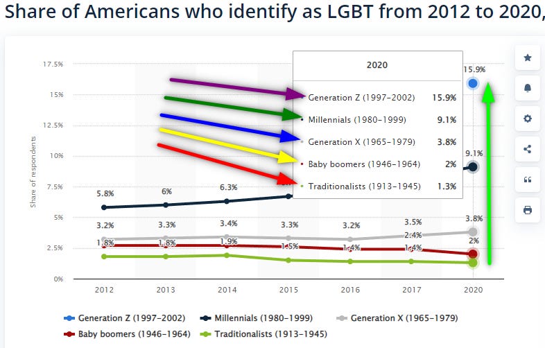 The indoctrination of fertile minds desperate for any seeds of guidance is being sowed with bearded rainbow seeds of hairy-assed men reading at public libraries, 72 genders, 24 sexes, 11 non-binaries, and a partridge in a pear tree and told to water them, watch them grow, and “authentically” choose one of them with tremendous unending amounts of pride. The cult has a new generation of adherents, allies, and mentally confused disciples. Each generation races in greater numbers to the rainbow cult’s altars faster than the last. Proudly confused.
