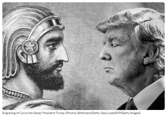 It is well known that Benjamin Netanyahu and his especially his Christian Zionist entourage have designated Donald Trump as the Spiritual heir of the Persian Emperor, Cyrus