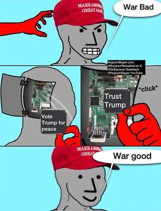 Trump is no anti-war candidate. He’ll do whatever his masters tell him, just as he did during his first term when he couldn’t be bothered to find $5 Billion in between the DC sofa cushions for his wall, with control of both houses.