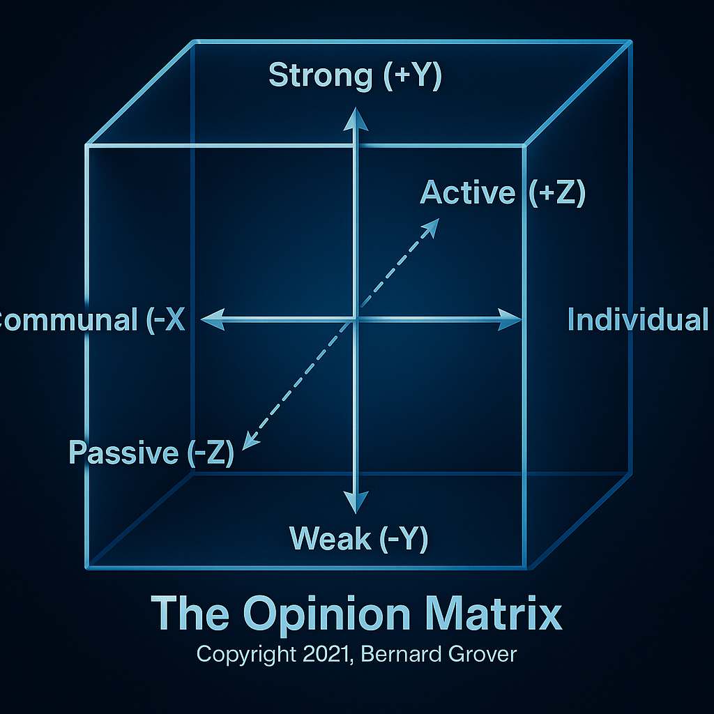 Basically, in my worldview, the murderous insane “lefties” are -X/+Y/+Z. Someone like Charlie Kirk would fall on the +X/+Y/+Z spectrum. On an issue like uncontrolled immigration, do you think it’s an individual or collective problem? Do you feel strongly or weakly about it? Do you actively pursue the issue, or keep your thoughts to yourself? You can do this exercise with any issue to get a visual map of your opinions.